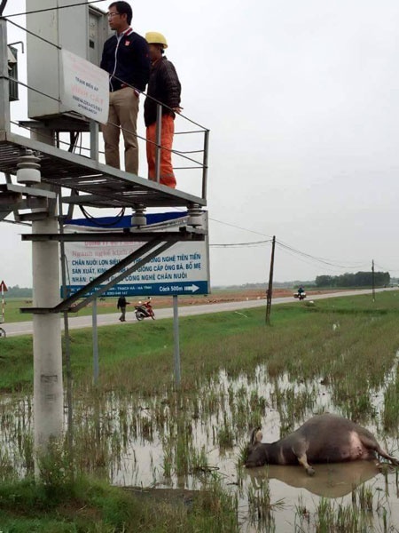 Trong thời điểm đang chờ xử lý trách nhiệm vụ TNLĐ ở điện lực TP Hà Tĩnh thì sáng 2/11, khi ông Trần Xuân Mại (53 tuổi, trú xã Thạch Vĩnh, Thạch Hà, Hà Tĩnh) lùa trâu ra đồng bất ngờ con trâu nằm chổng vó chết ngay cạnh trạm điện của Chi nhánh Điện lực Thạch Hà.