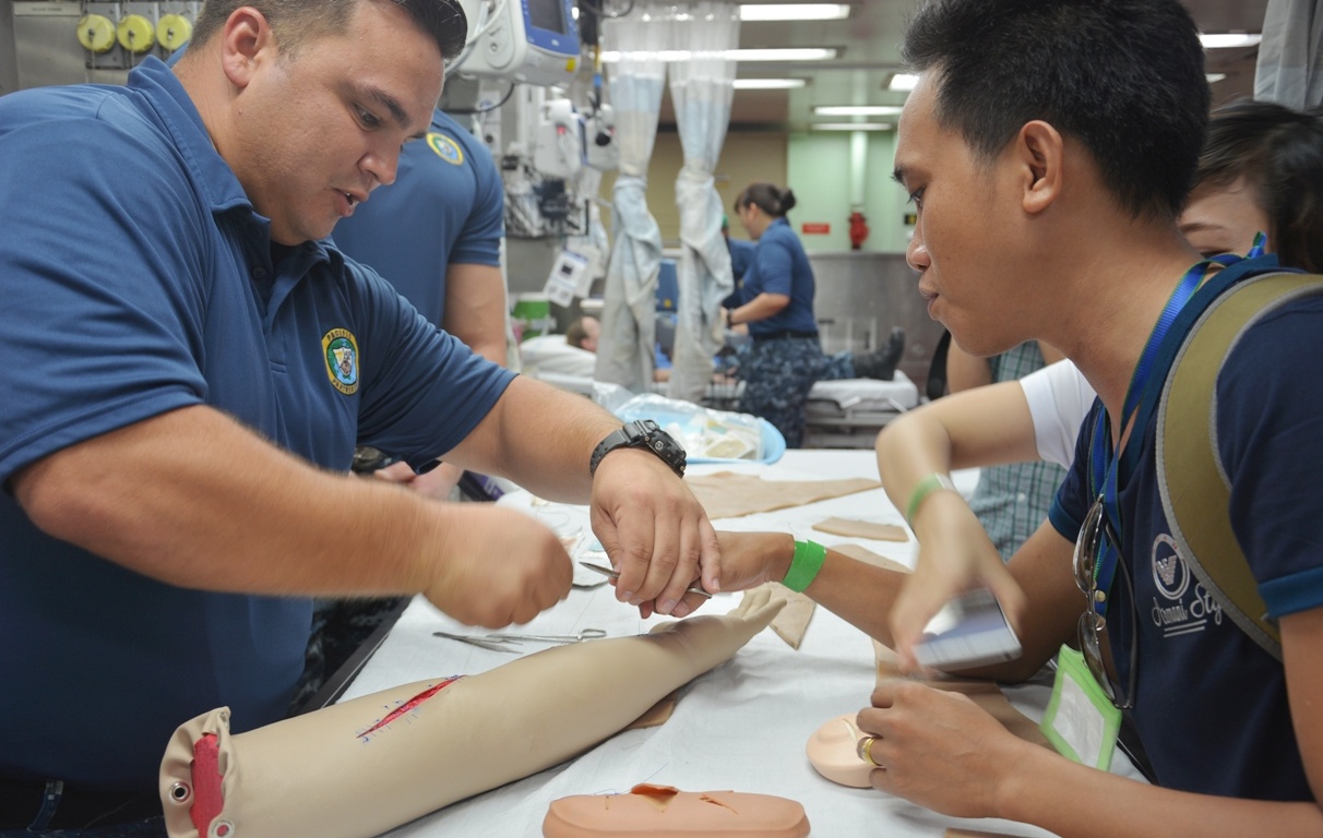 Hải quân Việt Nam - Mỹ tổ chức diễn tập quy mô lớn với chủ đề "Cứu trợ y tế biển đảo". Đây là cuộc diễn tập về cứu nạn và chăm sóc nạn nhân trong thảm họa sóng thần.