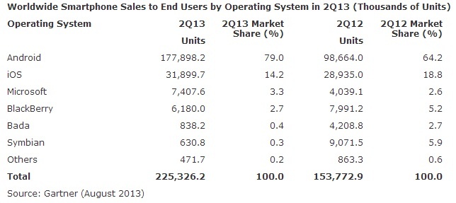 BlackBerry đã đánh mất vị trí thứ ba vào tay Windows Phone. Hiện tại, hãng chỉ còn 2,7% thị phần so với 3,3% từ nền tảng của Microsoft. BlackBerry chỉ còn giữ được vị trí thứ ba tại thị trường Mỹ, nhưng theo giới quan sát, việc Windows Phone vượt lên sẽ chỉ là còn là vấn đề thời gian. Giảm thị phần và doanh số ế ẩm, BlackBerry đã quyết định cắt xén 10% sản lượng điện thoại trong quý III, từ 5,5 triệu chiếc xuống còn 5 triệu chiếc.