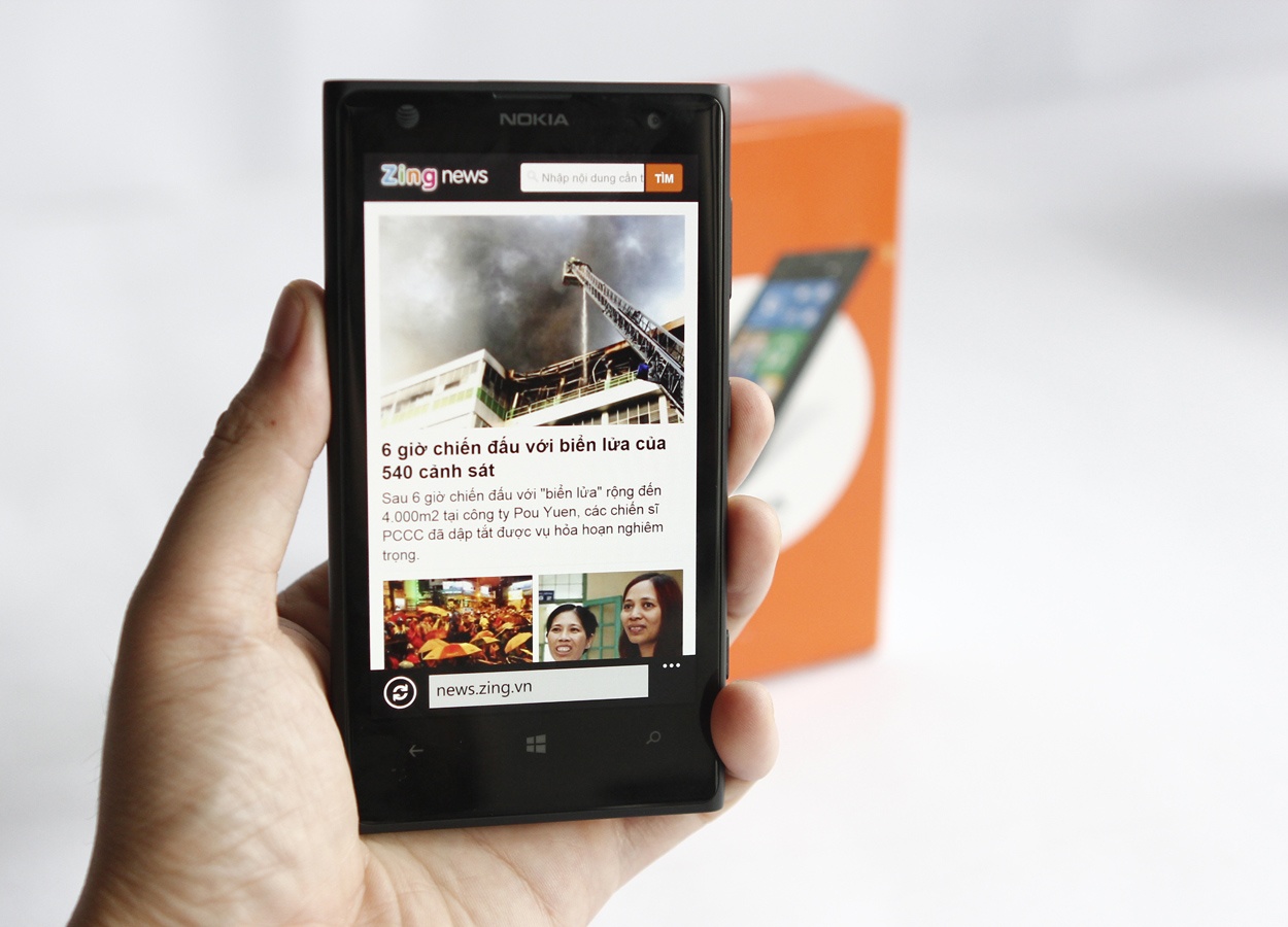 | Model này dùng màn hình 4,5 inch 720p Super AMOLED, cho khả năng hiển thị sáng, màu sắc sặc sỡ. Với chip lõi kép tốc độ 1,5 GHz đi kèm RAM 2 GB, đây cũng là sản phẩm mạnh mẽ nhất của Nokia thời điểm hiện tại. |