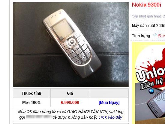 Còn Nokia 9110i hiện nhiều nơi cũng rao bán “hàng mới 100%” nhưng giá cao nhất là 3,5 - 4 triệu đồng thay vì ngất ngưởng hàng chục triệu như đề cập ở trên.