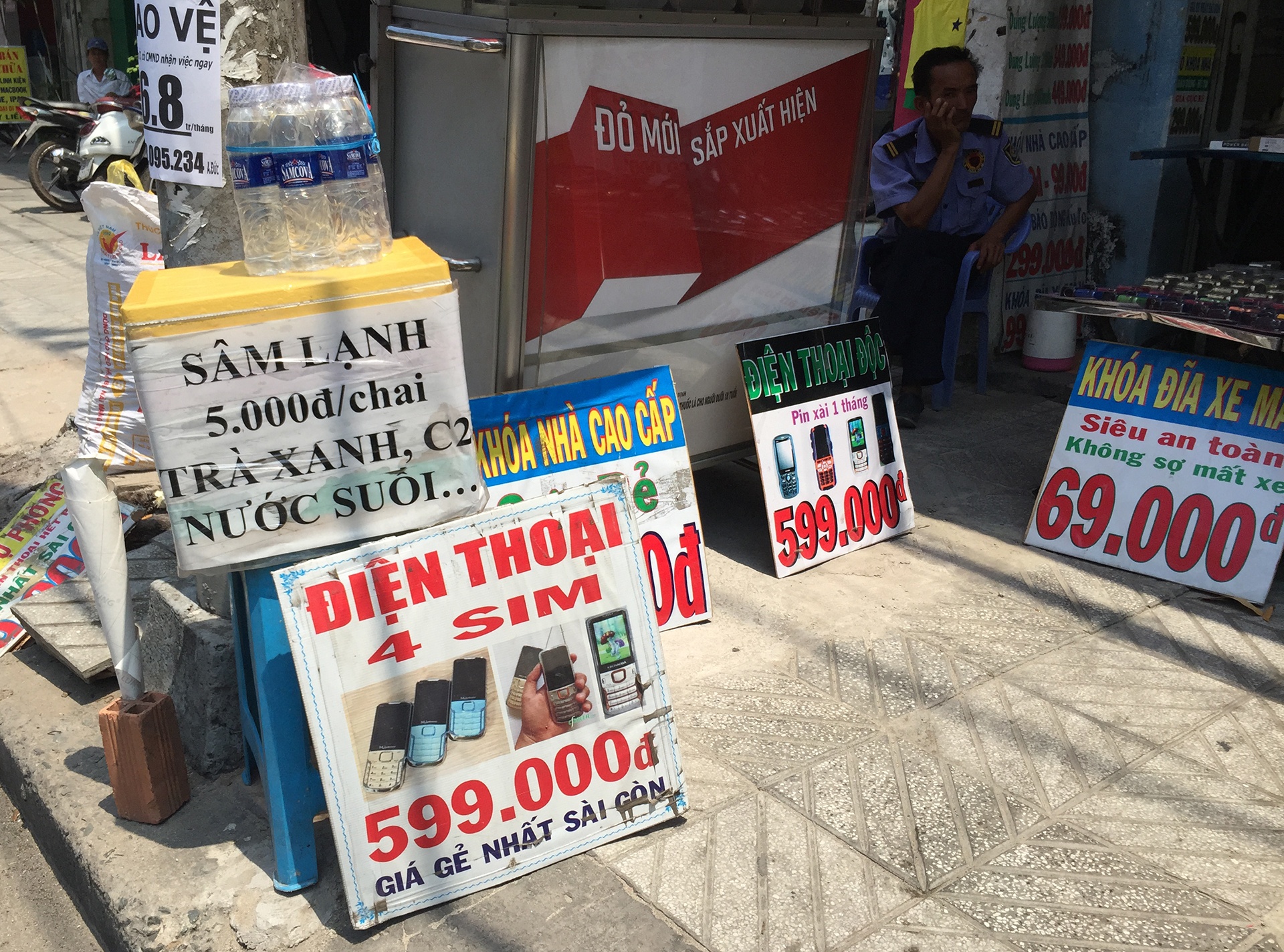 | Gần đây, một số cửa hàng nhỏ ở TP HCM rao bán dòng điện thoại cơ bản hỗ trợ 4 SIM với giá 599.000 đồng. |