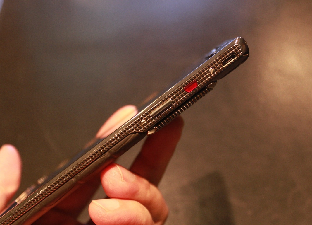 | Cạnh phải là phím nguồn, cổng sạc. Bên cạnh đó, Vertu bổ sung phím tắt màu đỏ, cho phép người dùng truy cập nhanh đến các dịch vụ được họ đặt riêng cho khách hàng. |