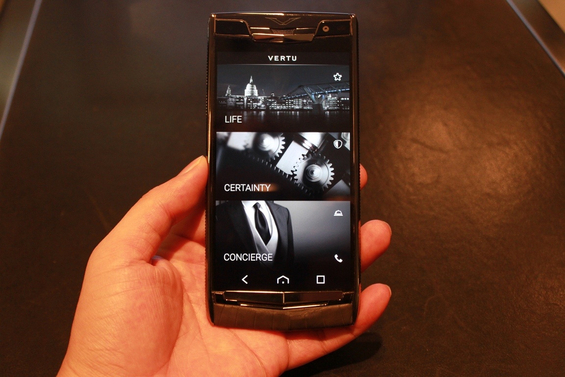 Signature Touch là dòng smartphone cao cấp nhất của Vertu, với 4 phiên bản tại thị trường Việt Nam. Đại diện thương hiệu này nói với Zing.vn, tất cả chúng đều được chế tác tại nhà máy ở Anh. Máy dùng màn hình sapphire, công nghệ LED, kích thước 5,2 inch, độ phân giải Full HD. |
