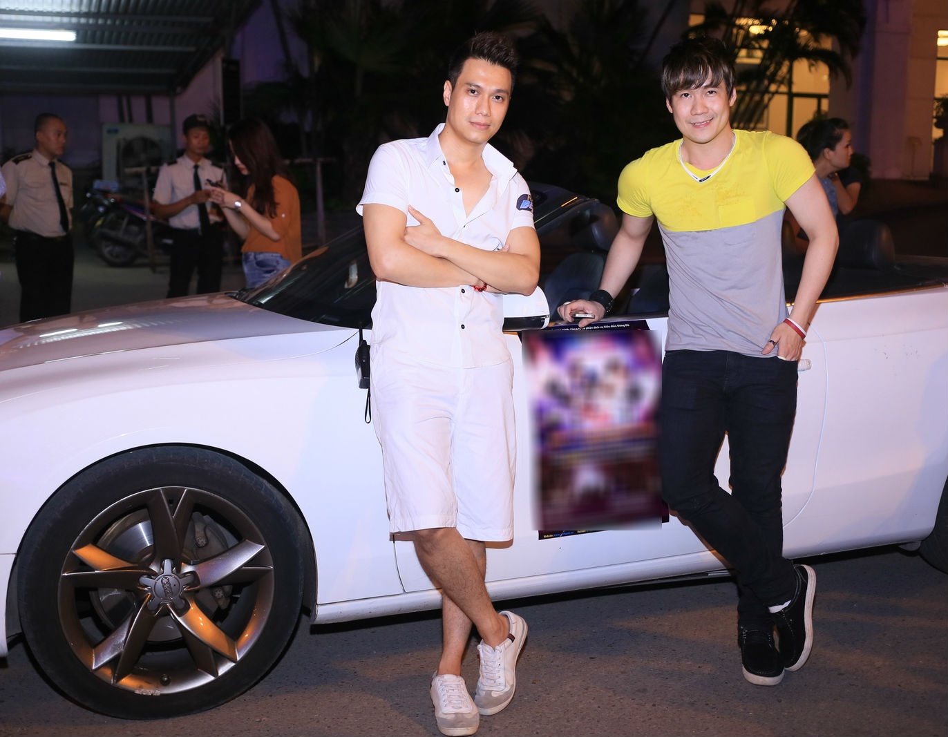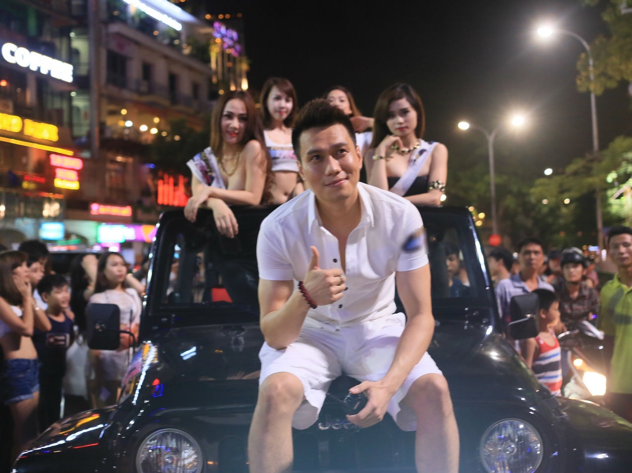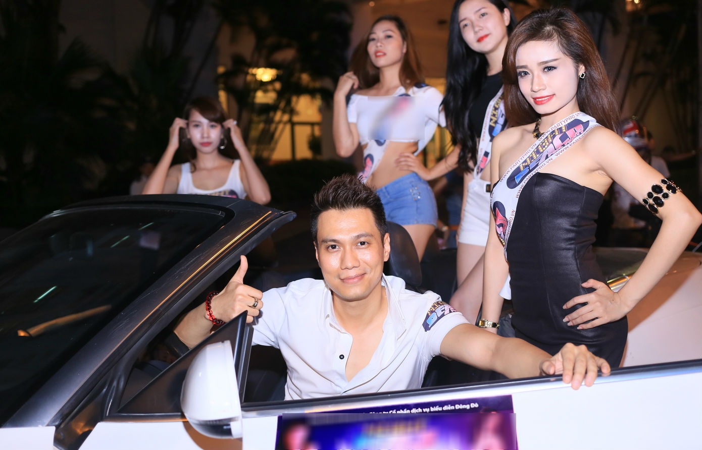 | Cuối tuần vừa rồi, diễn viên Việt Anh thu hút sự chú ý với nhiều người đi đường khi xuất hiện trên phố cùng chiếc xe mui trần cùng với rất nhiều chân dài ăn vận gợi cảm. |