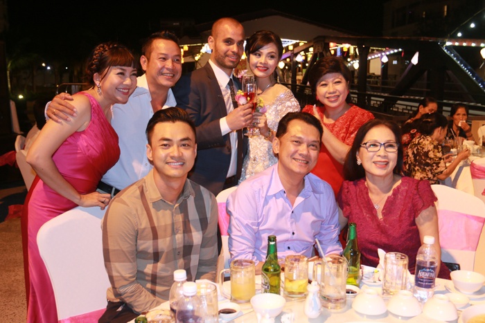 Tiệc cưới xa TP HCM nên diễn viên không mời nhiều bạn bè. Tuy nhiên, đoàn nghệ sĩ - diễn viên của sân khấu Idecaf đã có mặt gần như đông đủ để chúc phúc hai vợ chồng. Đối với Xuân Thùy, đây là món quà tinh thần lớn mà mọi người dành tặng cho cô trong ngày trọng đại.