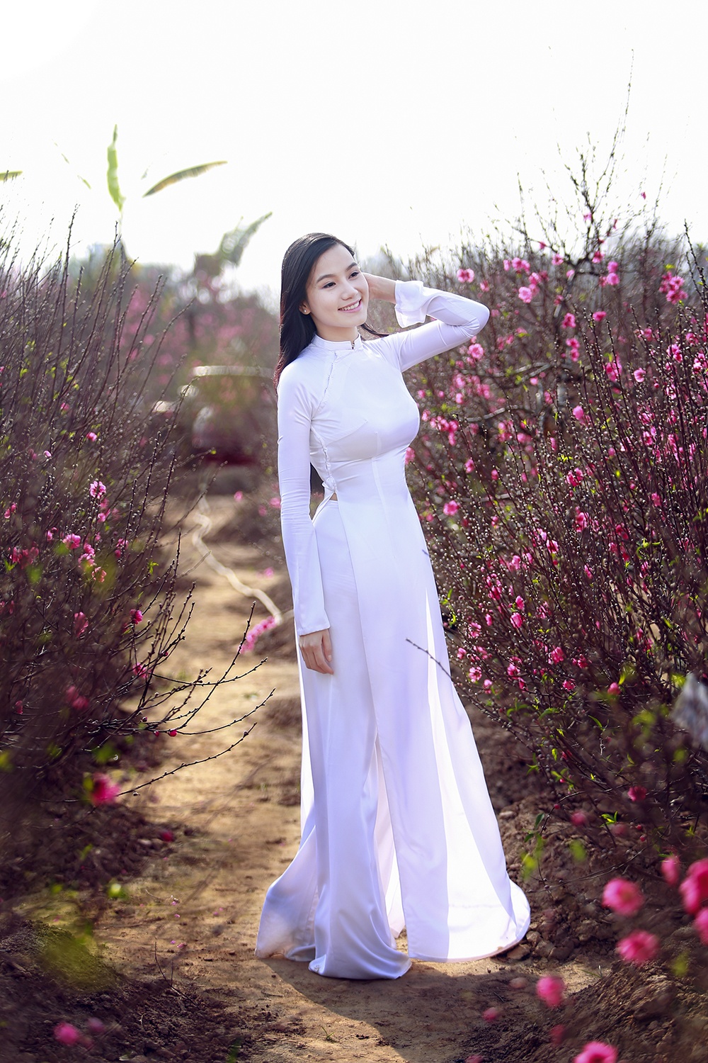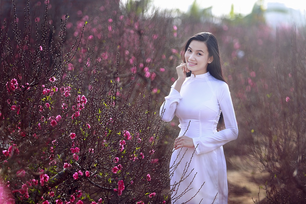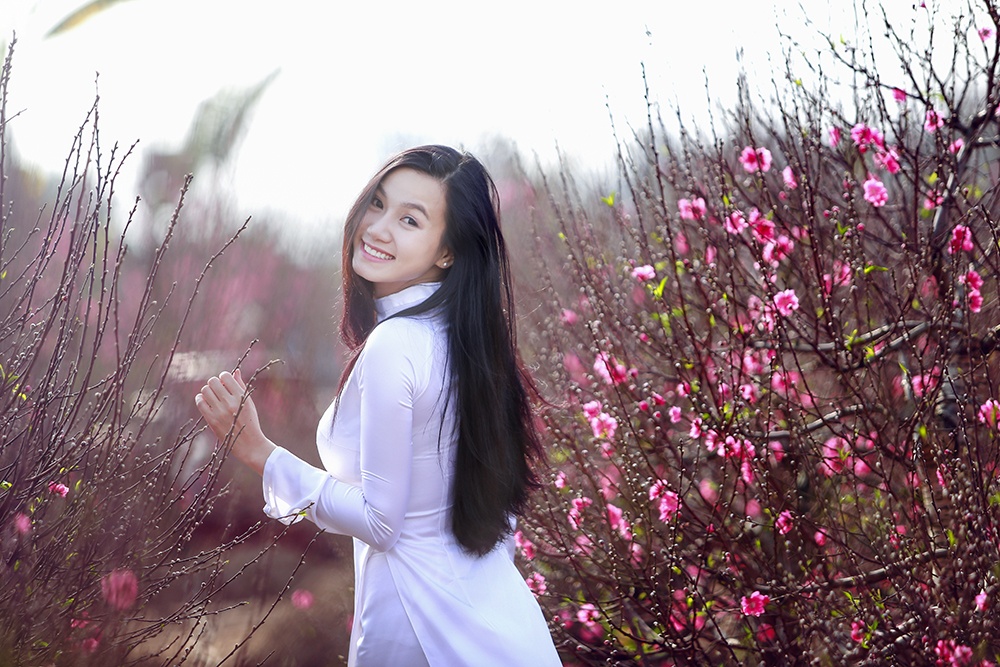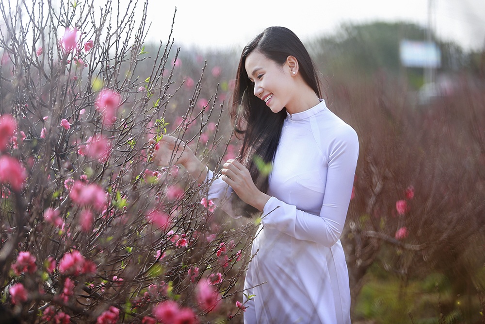 Lương Giang - nữ diễn viên chính của phim Hoa cỏ may phần 3 - khoe vẻ đẹp tươi tắn và rạng rỡ bên sắc hồng của hoa đào trong những ngày giáp Tết.