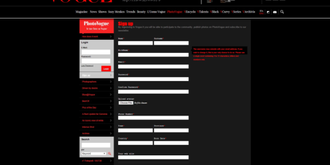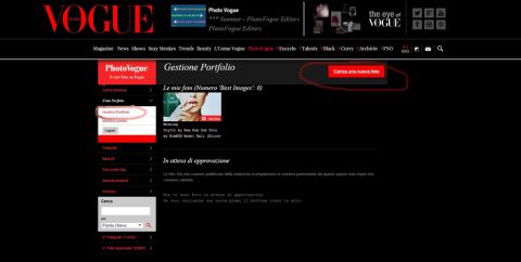 | Sau khi đăng kí xong chỉ việc xác nhận e-mail là bạn đã có thể có 1 tài khoản trên Photo.Vogue.it và bắt đầu đăng hình, góc trái là vào giao diện đăng hình, góc phải click vào để up, 1 ngày chỉ up được 3 tấm và có thời gian quy định, ảnh sau khi đăng sẽ được gắn watermark Vogue.it. |