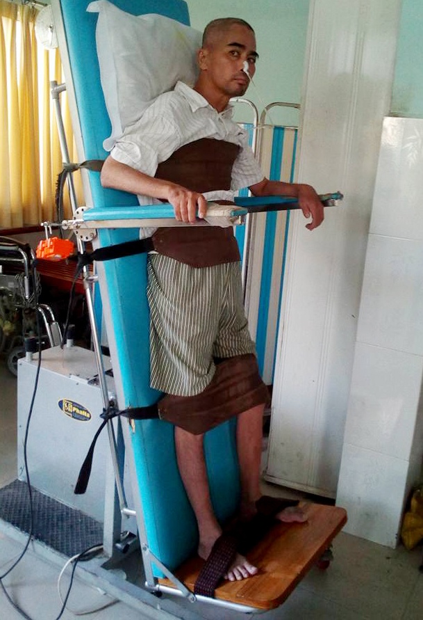 Anh tập vật lý trị liệu tại bệnh viện. Ảnh: Nam Trung |