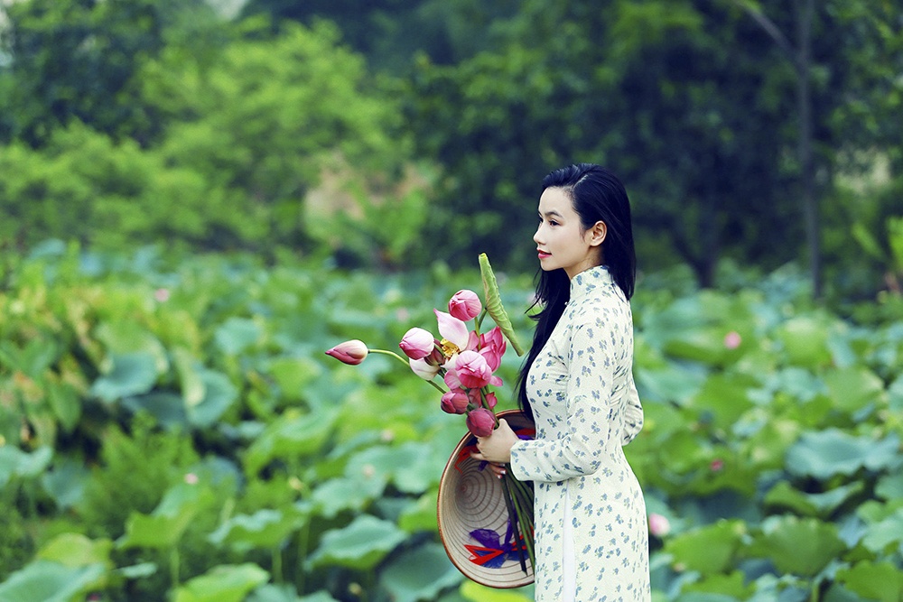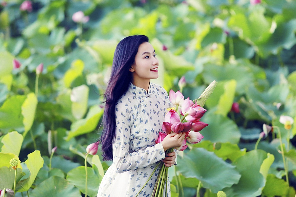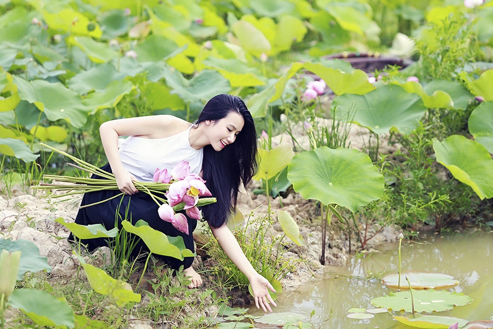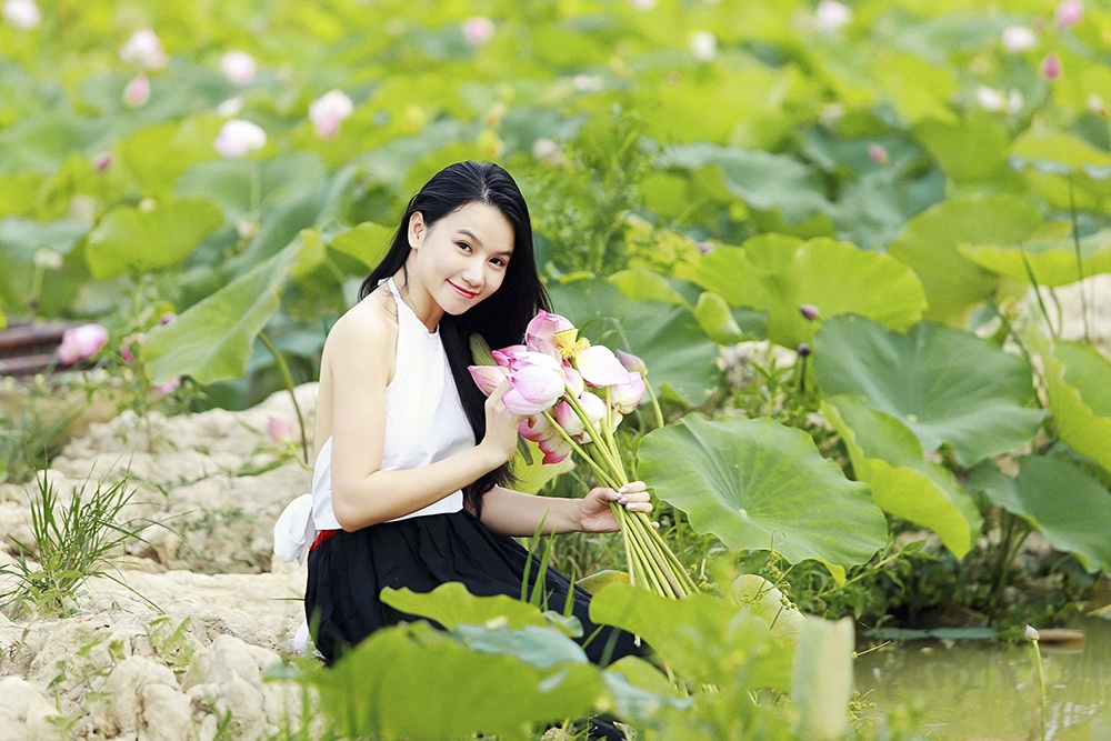 Nữ diễn viên Lương Giang khoe vẻ đẹp trong sáng, dễ thương bên những cánh hoa sen.