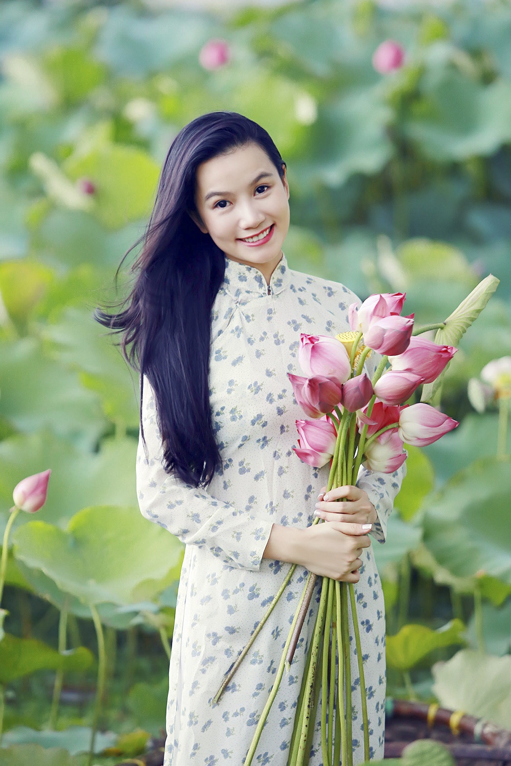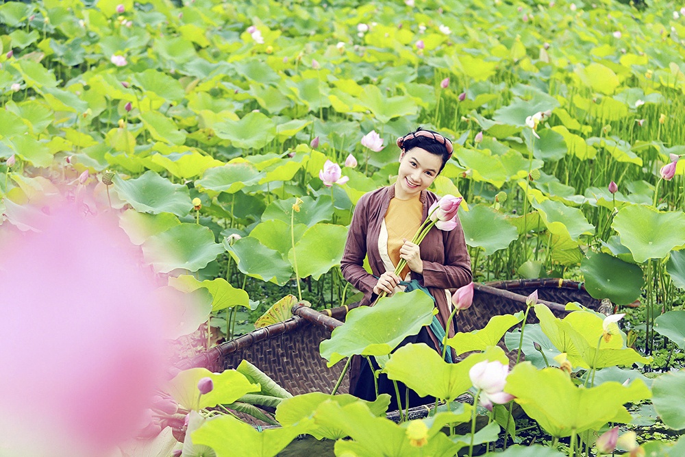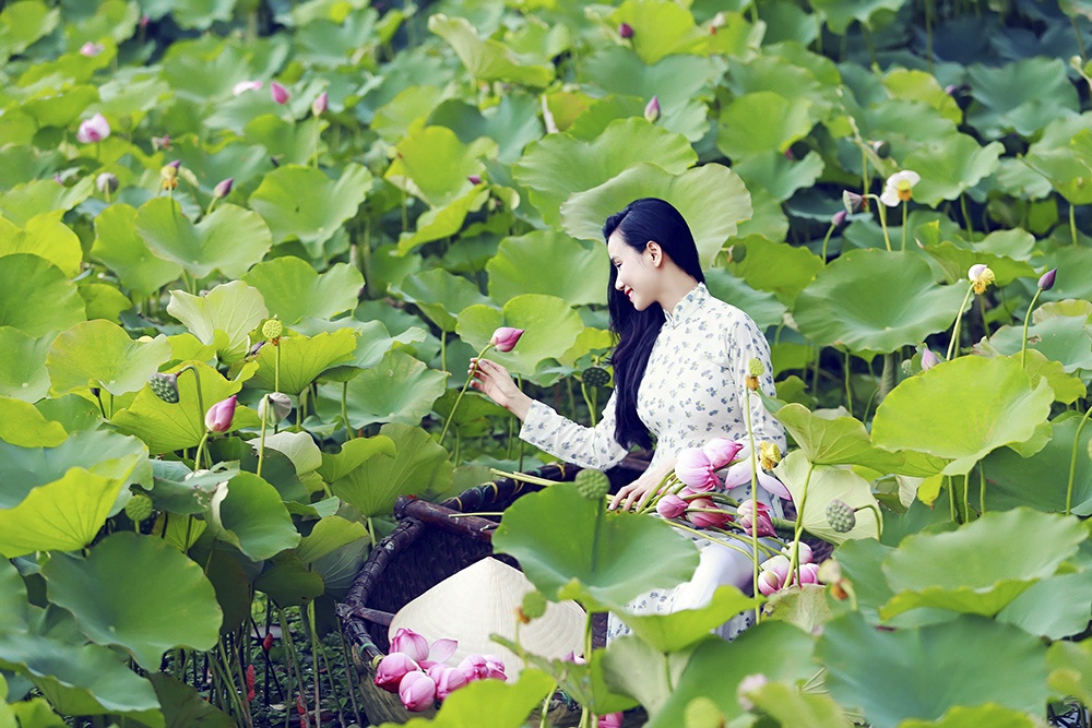 Diễn viên phim 'Hoa cỏ may' khoe sắc bên hoa sen