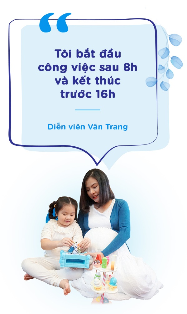 “Trong thời gian nuôi bé Nì, tôi vẫn tham gia các hoạt động nghệ thuật, dự án điện ảnh phù hợp, game show và sân khấu kịch để nuôi dưỡng đam mê của mình. Ngoài ra, tôi cũng điều hành một số hoạt động kinh doanh bên ngoài. Tuy nhiên, tôi luôn sắp xếp mọi công việc bắt đầu sau 8h và kết thúc trước 16h, bởi đó là khoảng thời gian con đi học. Thời gian còn lại, tôi dành trọn vẹn cho con.”, Vân Trang chia sẻ.
