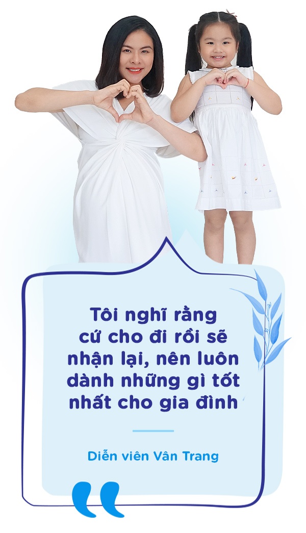 Nhận được hỗ trợ và ủng hộ hết mình từ gia đình, theo Vân Trang, đó là kết quả của việc cô đã làm tốt công việc và vai trò khi ở nhà. Luôn suy nghĩ cho đi rồi sẽ nhận lại, Vân Trang thường xuyên lên kế hoạch, tìm hiểu và bổ sung các sản phẩm dinh dưỡng phù hợp từng giai đoạn khác nhau, giúp tăng cường sức khỏe cho cả nhà.
