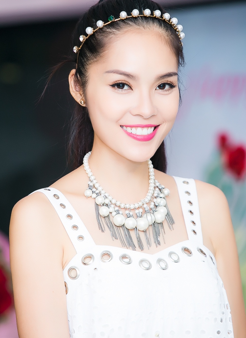 | Diệp Bảo Ngọc - đồng nghiệp thân thiết của Dương Cẩm Lynh cũng có mặt chúc mừng người đẹp quê Đồng Nai. |