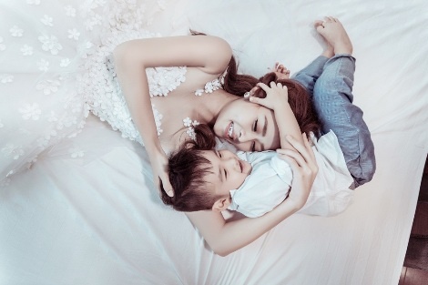 | Hàng ngày, cô phải thức dậy từ 5h30 để chuẩn bị đến phim trường nên việc chăm sóc và đưa đón con trai, cô nhờ bà ngoại giúp. Tuy nhiên, mỗi buổi tối, cô đều dành thời gian trò chuyện và chơi với con. |