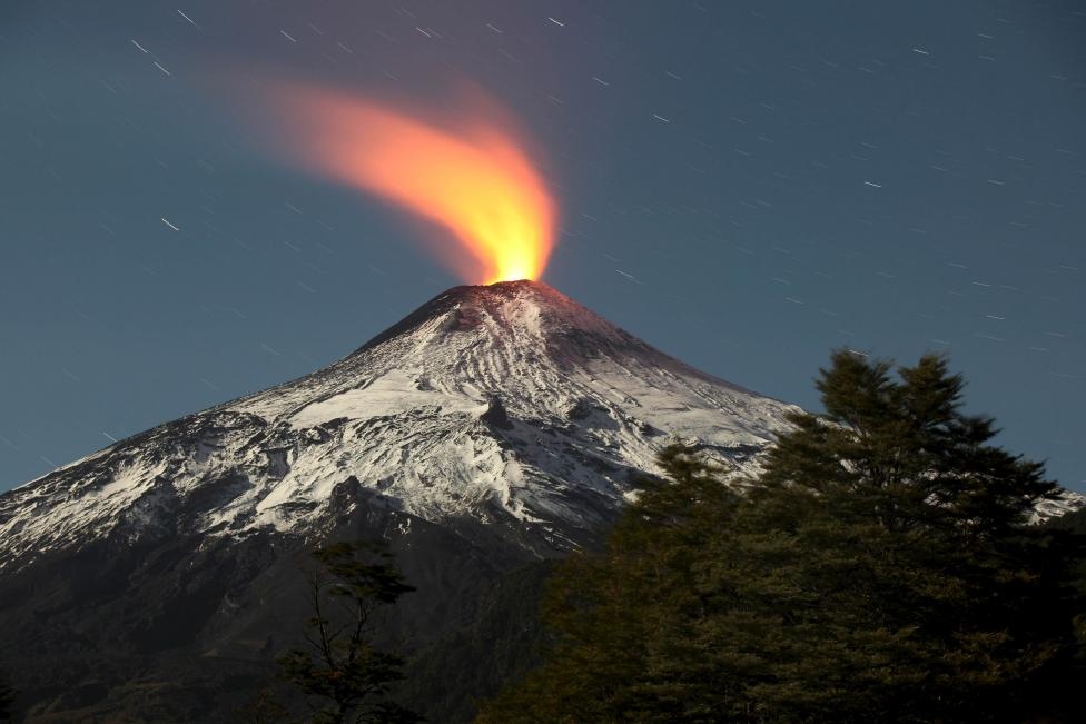 Núi lửa Villarrica nằm gần thị trấn Pucon, Chile, thức giấc ngày 5/5. |