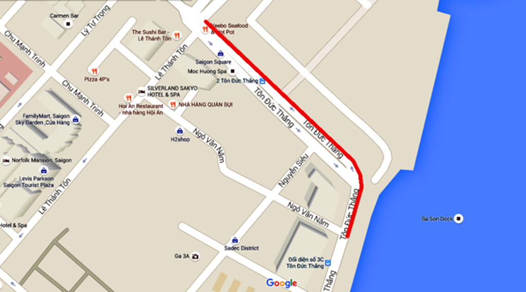Lộ trình thay thế 1: Nguyễn Hữu Cảnh → Lê Thánh Tôn → Ngô Văn Năm → Tôn Đức Thắng.
