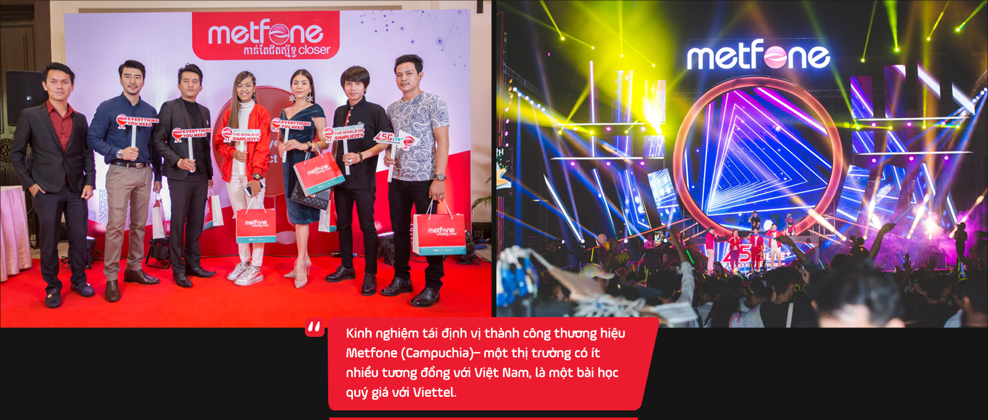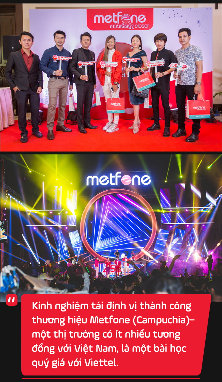 Đặc biệt, kinh nghiệm tái định vị thành công thương hiệu Metfone (Campuchia) - một thị trường có ít nhiều tương đồng với Việt Nam, là bài học quý giá. Từ “một luồng gió mới”, sau gần 10 năm phát triển, Metfone cũng bị nhận diện là “thương hiệu già”. Thế nhưng, sau khi tái định vị với việc sử dụng linh vật thương hiệu Munny, cùng màu đỏ tươi trẻ (thể hiện sự nổi bật, trẻ trung và mạnh mẽ), Metfone đã bật lên mạnh mẽ, chiếm trọn cảm tình của nhóm khách hàng trẻ.