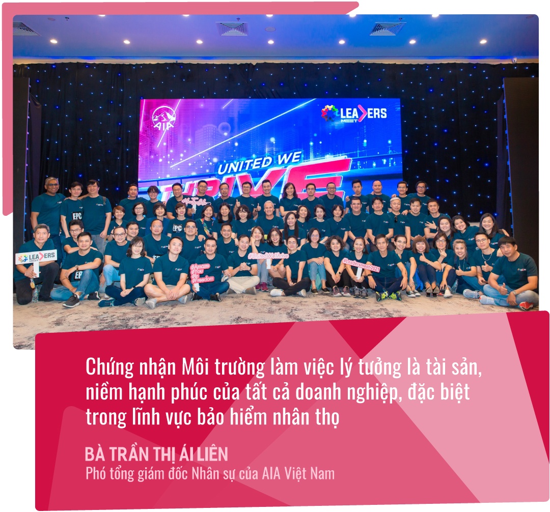 Bà Trần Thị Ái Liên, Phó tổng giám đốc Nhân sự của AIA Việt Nam, chia sẻ: “Tôi muốn gửi lời cảm ơn đến tất cả thành viên công ty vì sự kiên cường, dũng cảm. Cam kết của họ mang đến cuộc sống tốt đẹp hơn mỗi ngày. Chứng nhận Môi trường làm việc lý tưởng là sự phản chiếu những đóng góp tốt đẹp của các thành viên AIA Việt Nam cho tổ chức. Đó là tài sản, niềm hạnh phúc của tất cả doanh nghiệp, đặc biệt trong lĩnh vực bảo hiểm nhân thọ - ngành đậm tính nhân văn”.