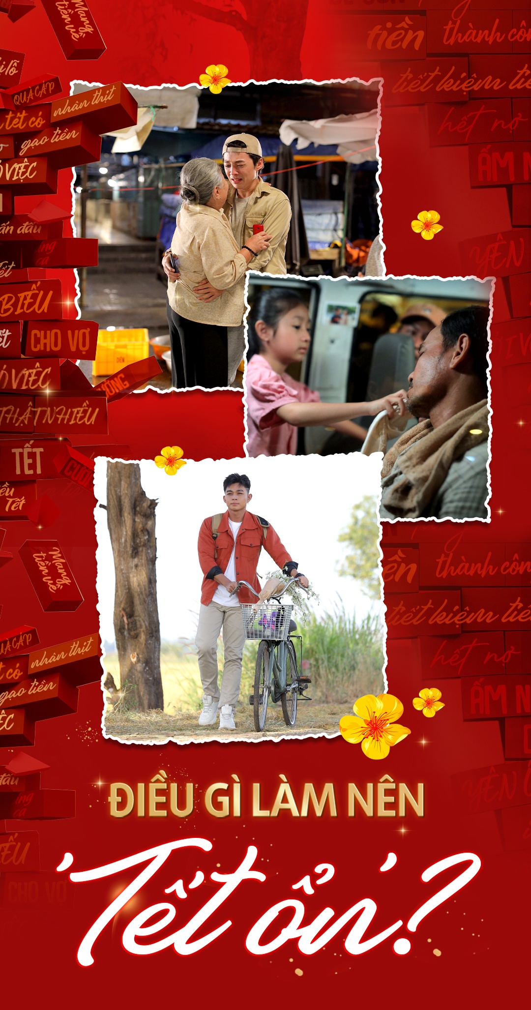 Giọt nước mắt lăn dài trên gò má của cả hai trong khoảnh khắc chạm mặt; cái đánh yêu của người phụ nữ luống tuổi khi thấy con mình bất chấp lăn lộn vì một cái Tết ấm no; cái ôm ấm áp giúp cậu con trai rũ bỏ hết áp lực... tất cả đã tạo nên phân cảnh ý nghĩa, làm nổi bật thông điệp “Tết ổn” là cả nhà bình an bên nhau.