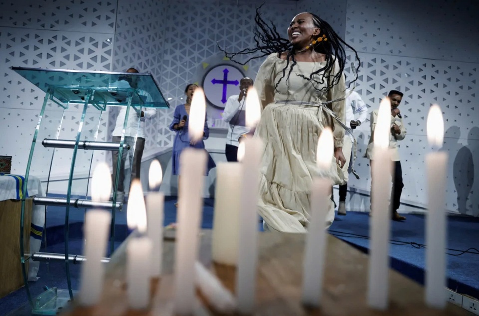 Một thành viên dàn hợp xướng hát trong lễ đón giao thừa năm mới 2015 theo lịch Ethiopia, tức năm 2022 dương lịch. Ảnh: Reuters. |