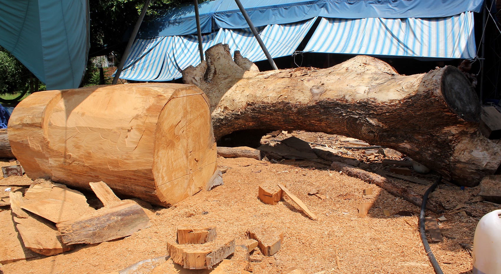 | Những cây gỗ lớn được xẻ khối theo kích thước của bức tượng. Loại gỗ được sử dụng nhiều trong điêu khắc tượng là gỗ sao. |
