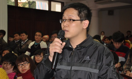| GS Ngô Bảo Châu trong buổi giao lưu chiều 16/12 tại ĐH Quốc gia Hà Nội. |
