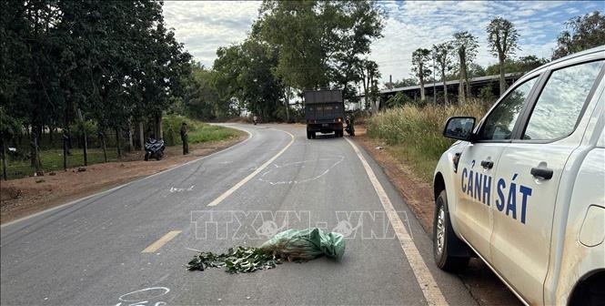 | Hiện trường vụ xe tải 2 lần cán qua người nạn nhân sau tai nạn. Ảnh: TTXVN |