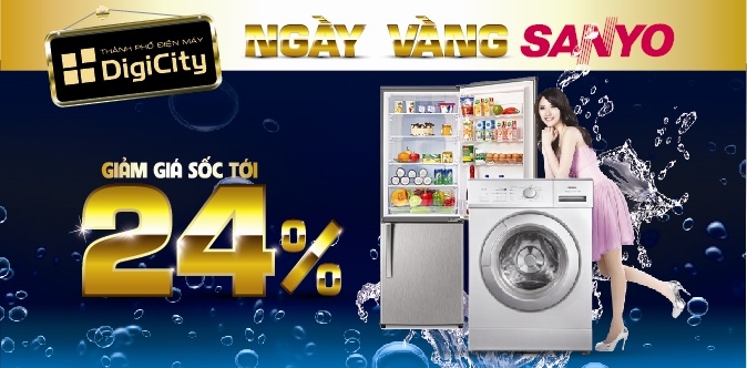 - Ngày vàng Sanyo: có nhiều sản phẩm được bán với mức giá bình dân, phải chăng, phù hợp với nhóm khách hàng có thu nhập trung bình muốn mua máy giặt và tủ lạnh. Chi tiết chương trình xem tại: www.digicity.vn/khuyenmai/ngayvangsanyo.html.