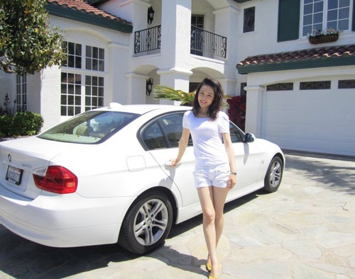 | Thái Như Ngọc tạo dáng trước biệt thự trị giá hơn 60 tỷ VND tại Mỹ. |