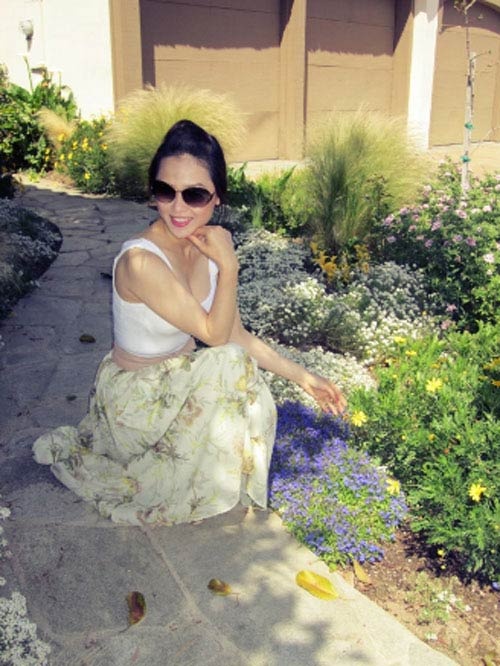 | Thái Như Ngọc rạng rỡ trong vườn nhà. |