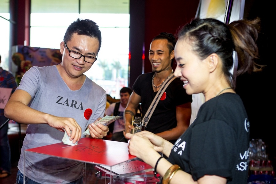 Sau khi cho ra mắt sách ảnh mang tên Cocktail, giày và khói, Đinh Ngọc Diệp đã tổ chức một buổi giao lưu cùng các em nhỏ nhân dịp Trung Thu vào chiều qua (21/9) tại TP HCM. Người đẹp diện trang phục rất bụi bặm và năng động, khác với hình ảnh quyến rũ khi đi dự sự kiện cách đây một ngày. |