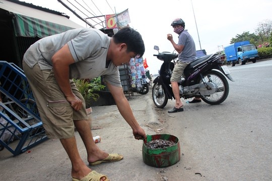 Tại Quốc lộ 1 (Đoạn qua ngã tư Ga, quận 12, TP HCM) lúc 7h ngày 1/3, 3 người hì hục dắt bộ xe máy do cán phải đinh. Người mướt mồ hôi, ông Trần Văn Hòa (ngụ huyện Hóc Môn) bức xúc: “Đây là lần thứ 7 trong tuần tôi cán phải đinh. Hôm qua, vừa qua ngã tư Ga xe máy chao đảo khiến tôi suýt mất mạng. Hoảng hồn, dừng lại kiểm tra phát hiện bánh xe phía sau găm 2 miếng đinh thép”.