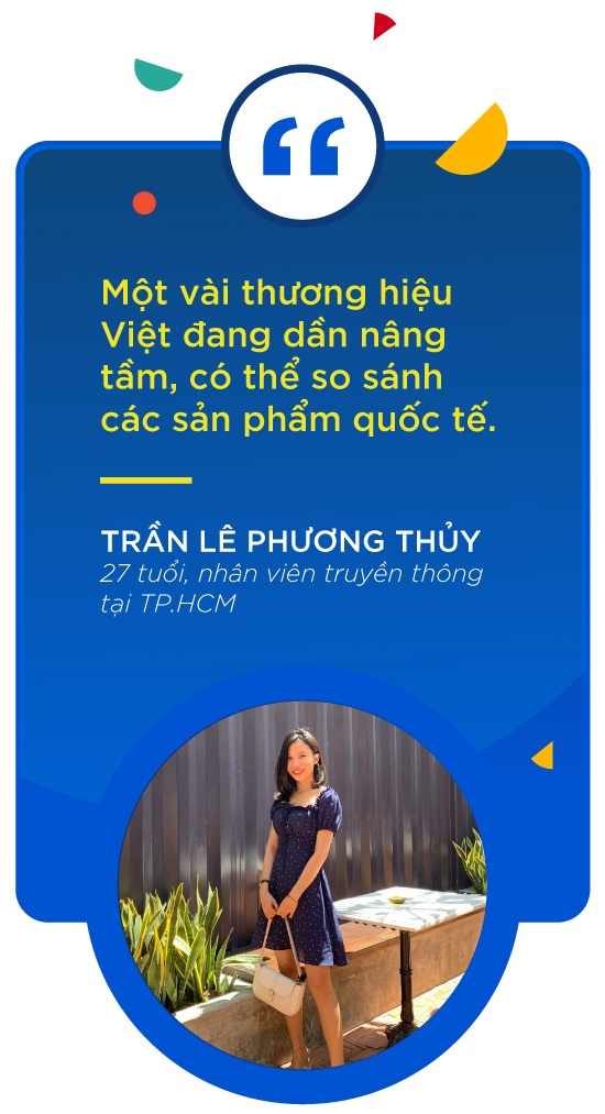 Thừa nhận ngành nào cũng có hàng Việt Nam chất lượng cao, song Trần Lê Phương Thủy (27 tuổi, nhân viên truyền thông tại TP.HCM) không phủ nhận việc hàng nội địa chưa được nhìn nhận đúng giá trị vốn có.