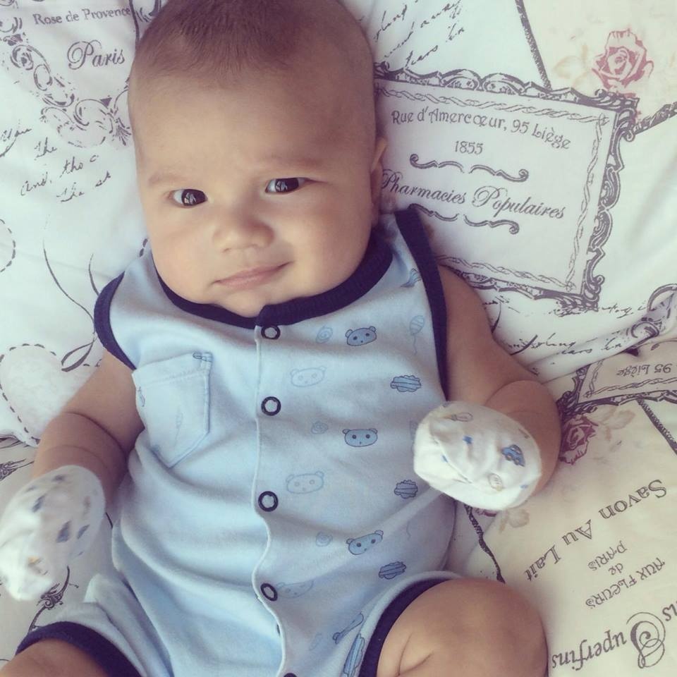 | Những hình ảnh đầu tiên của David cũng được nữ DJ chia sẻ lên trang cá nhân, cậu bé rất kháu khỉnh, gương mặt có nhiều biểu cảm khôi hài. |