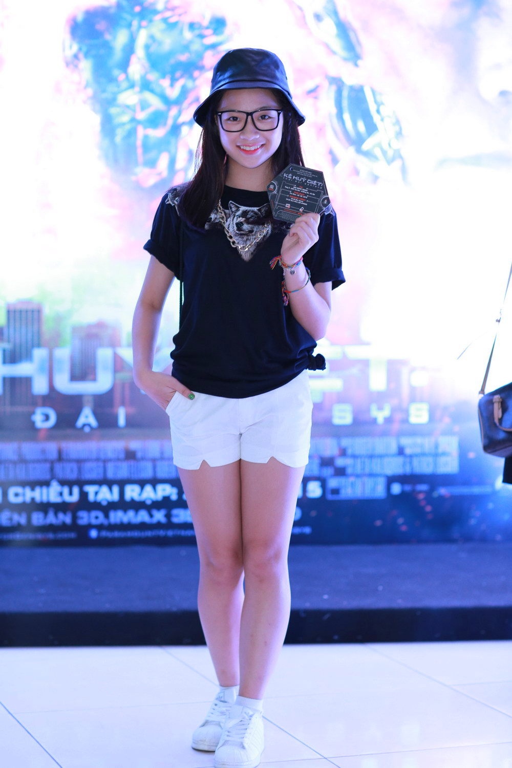 | Đi cùng Trang Moon là Slim V. Cả hai diện trang phục đối lập nhau. |