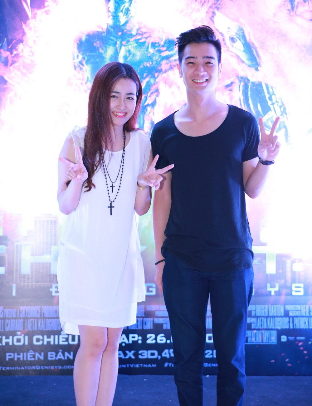 | Hot girl Trâm Anh và bạn trai Justa Tee tay trong tay tham dự sự kiện. |