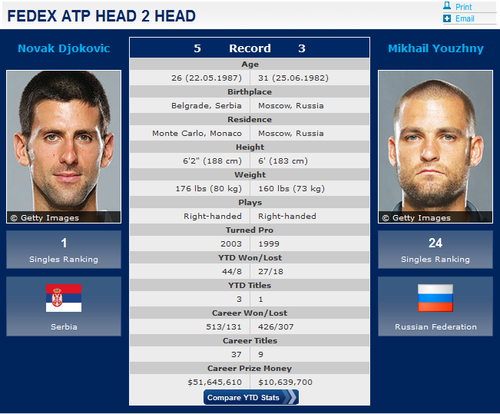Djokovic đang có thành tích đối đầu 5-3 trước hạt giống số 21 Mikhail Youzhny, tay vợt đang đặt mục tiêu lần thứ 3 vào bán kết US Open. Nole là người duy nhất chưa để thua 1 set nào tại giải năm nay (12 set toàn thắng), cũng như chỉ 3 lần mất break.