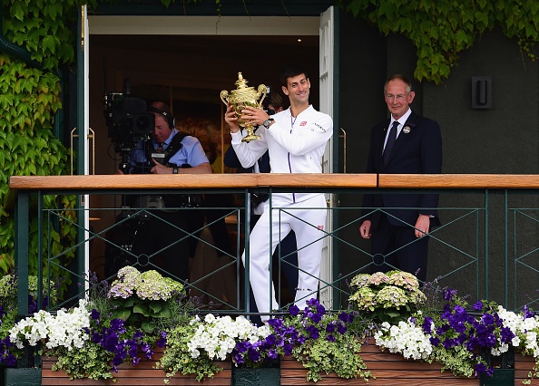 | Nole nhí nhảnh khoe chiếc cúp bạc trên ban công dành cho nhà vô địch. |
