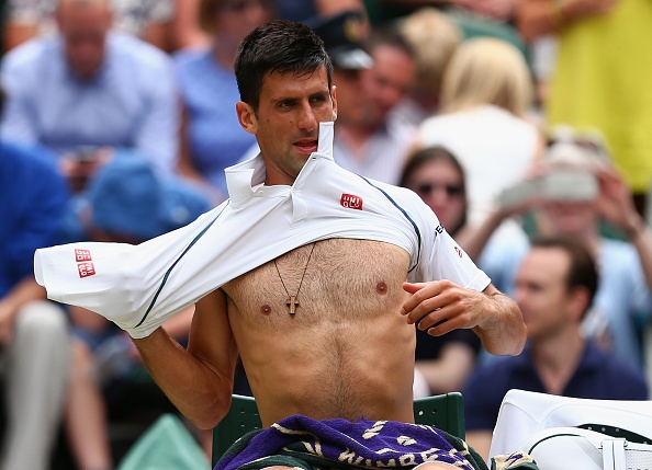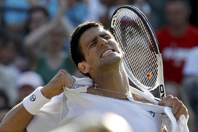 | Tức giận vì để tuột chiến thắng trong tầm tay, ngôi sao người Serbia có hành động xé áo. |