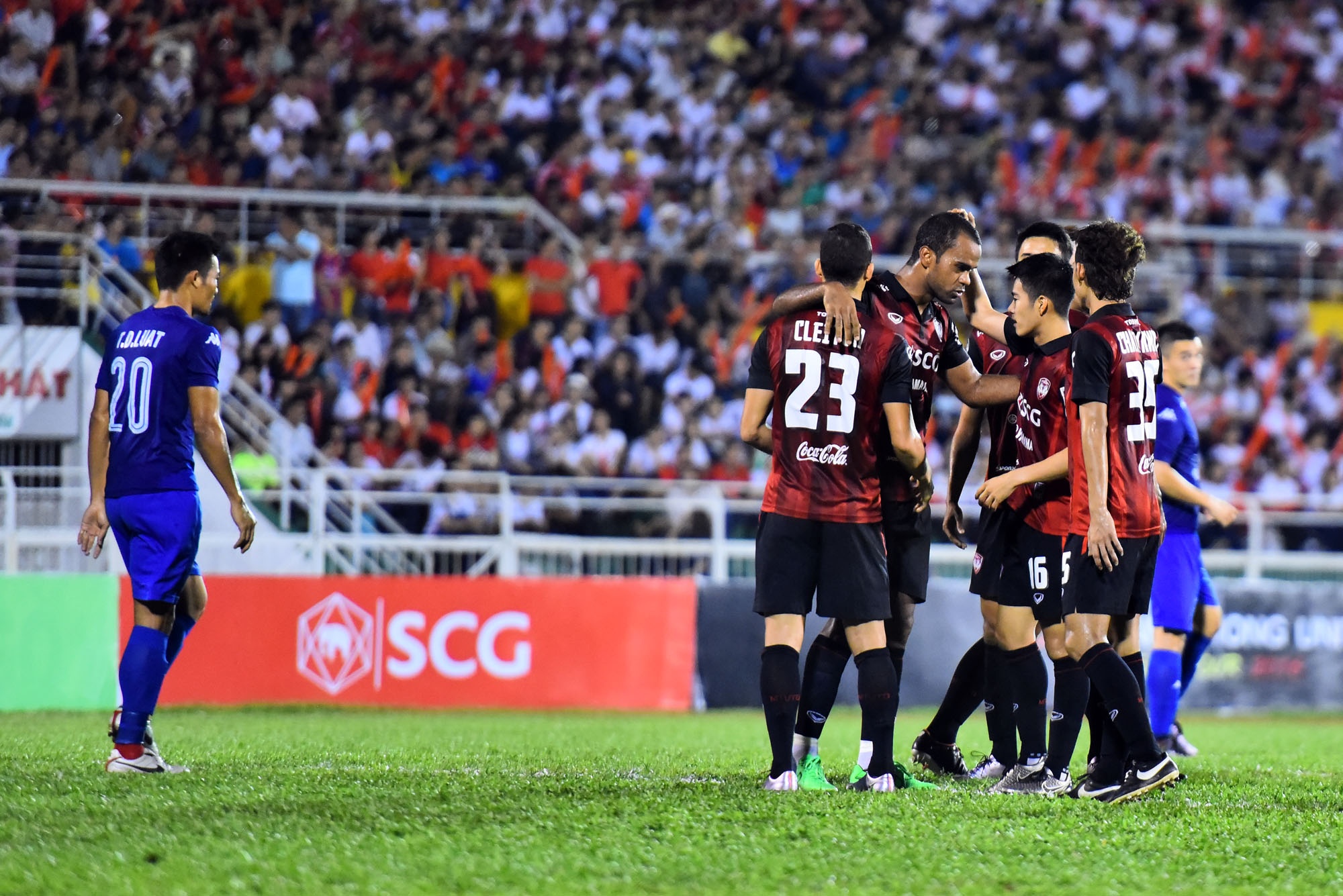 Dù không tung ra đội hình mạnh nhất, nhưng các cầu thủ Thái Lan vẫn tạo ra nhiều khó khăn cho nhà ĐKVĐ V.League với lối chơi đập nhả nhịp nhàng, và cũng chỉ mất 11 phút để chân sút Pinto Junio có bàn thắng đưa trận đấu về thế cân bằng.