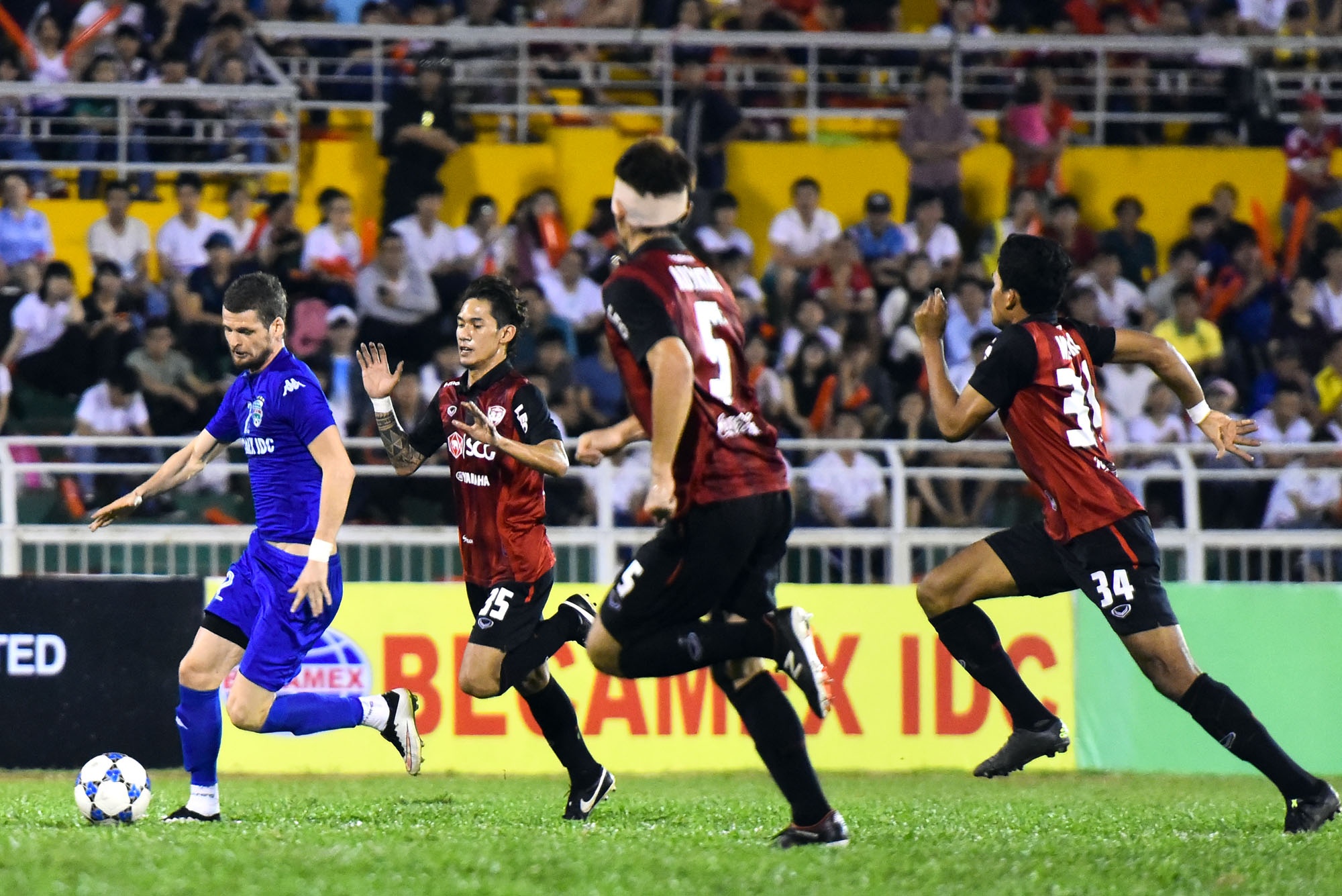 | Trong trận đấu với B.Bình Dương, CLB Muang Thong không tung ra những cầu thủ chủ lực của họ như Thonglao, Dangda, Kwin. Trong khi đó, B.Bình Dương tung ra đội hình mạnh nhất, điều đó giúp đội bóng đất Thủ tạo ra nhiều cơ hội sóng gió trước khung thành thủ môn đối phương. |