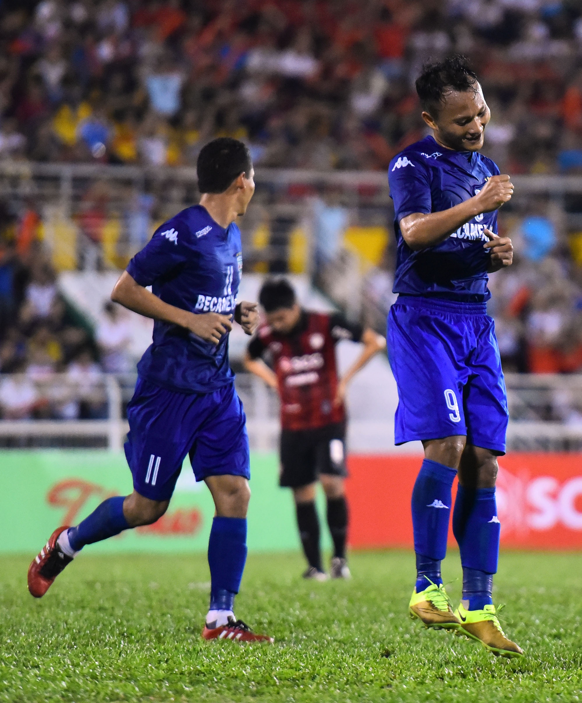 | Trong một ngày chân sút nội tỏ ra xuất sắc, B.Bình Dương lại một lần nữa vượt lên với bàn thắng của Trọng Hoàng ở phút 65 trận đấu. |