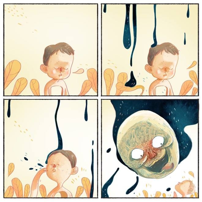 Nguyễn Trần Duy Tự đã lựa chọn phong cách vẽ tinh quái, hỗn loạn, bám sát lời văn truyện ngắn "Hai đứa trẻ" (Thạch Lam) để cho ra đời Đồ án tốt nghiệp của mình với tên "Đợi".