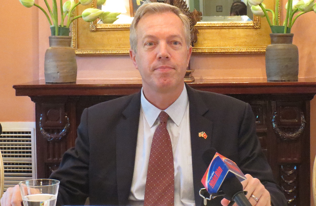 | Đại sứ Mỹ Ted Osius trong cuộc họp báo chiều 25/6 tại tư dinh. Ảnh: Hồng Duy |