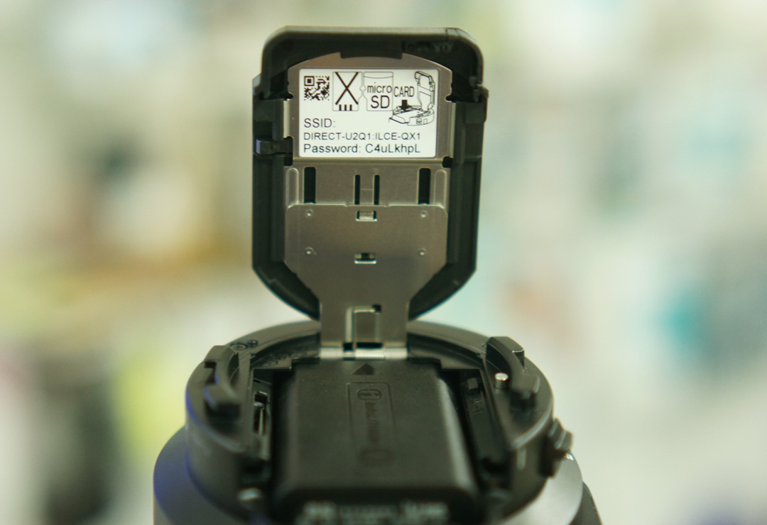 Chiếc QX1 sau khi đã lắp ống kính ngàm Emount.