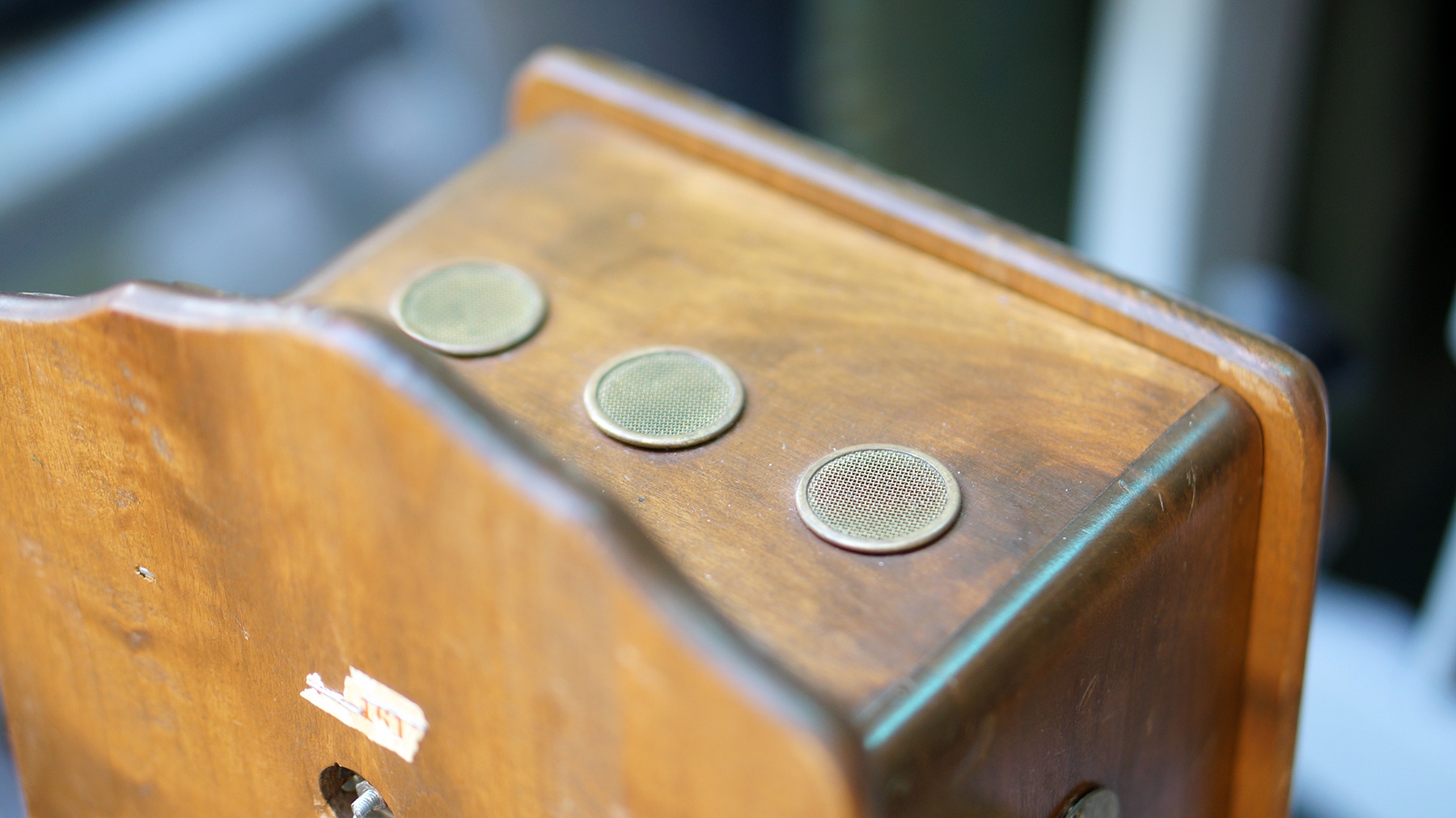 | Công tắc radio được thiết kế theo hình dáng của ống nghe điện thoại. Khi mắc vào giá đỡ, radio ngừng hoạt động, khi lấy ống nghe ra khỏi giá đỡ, chiếc đài này có thể bắt được sóng FM và AM. |