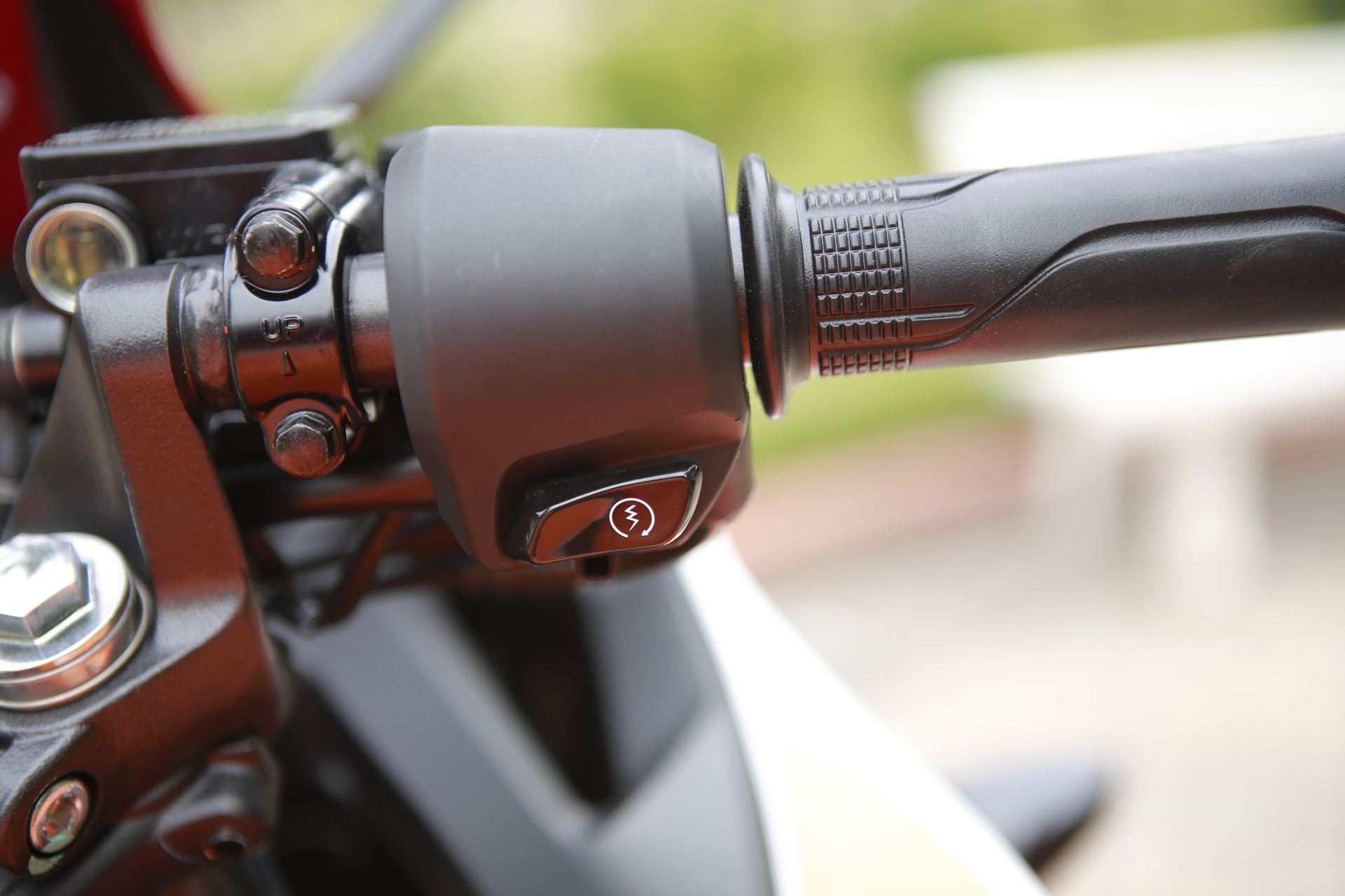 | Trên tay lái bên phải của CBR150R chỉ có duy nhất nút bấm khởi động. Trong khi đó, Yamaha R15 có thêm nút bấm ngắt-mở động cơ và đèn pha. |