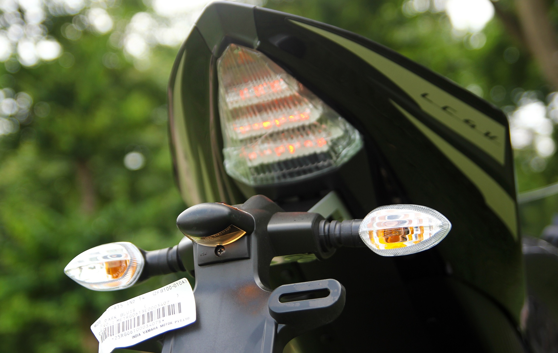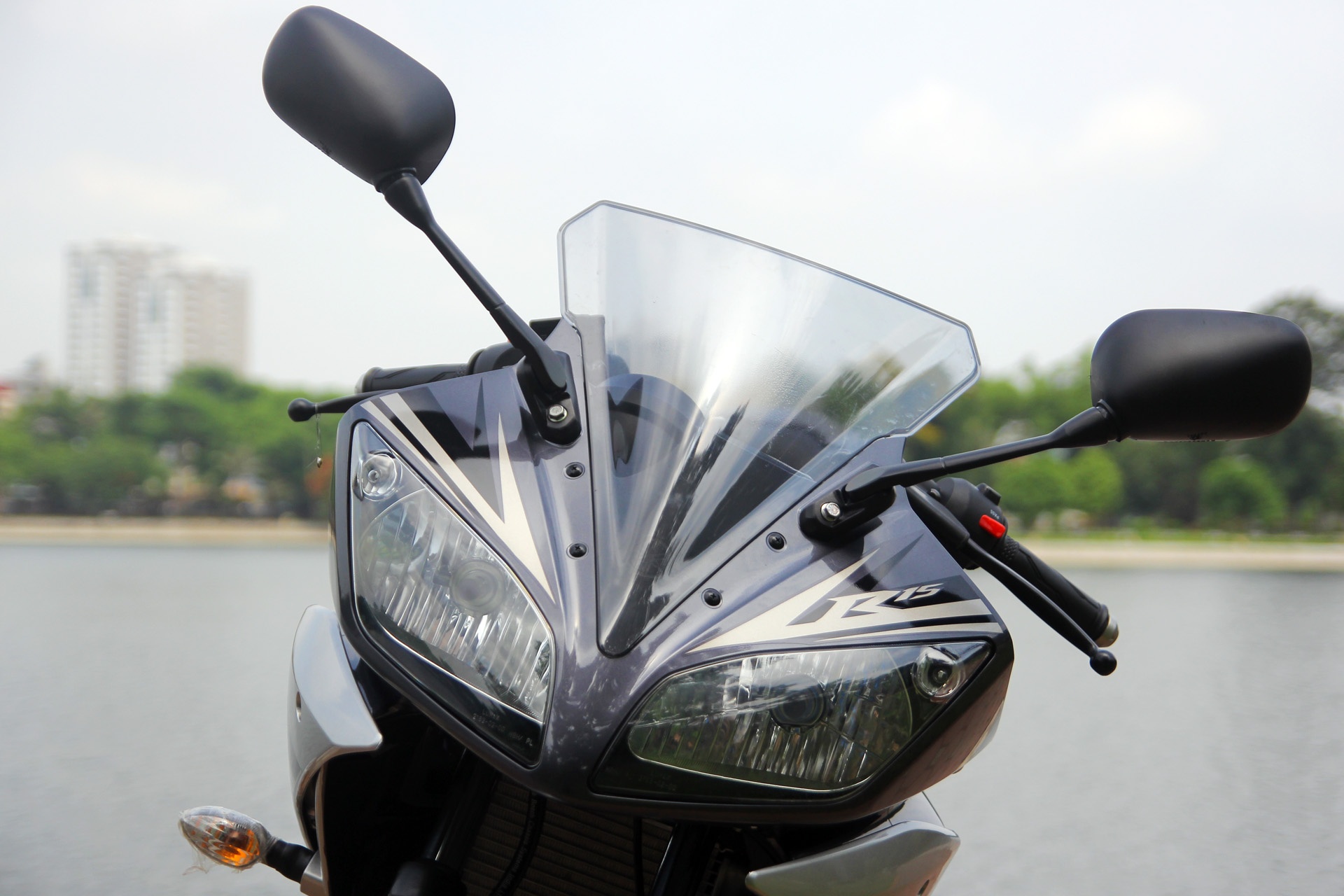 | Thiết kế đèn chiếu hậu và xi-nhan của Yamaha R15 đều nhỏ gọn hơn so với thiết kế của CBR150R. |