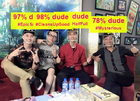 | Kết quả thay đổi trong bức hình khác, độ nam tính của Mạnh Quân chỉ là 64%, B Trần 93%, song thành viên không rõ mặt phía sau lại lên đến 99%. |
